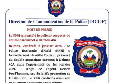 Un double homicide survenu le 1er janvier 2026 à Delmas 40A a conduit la Police nationale d’Haïti (PNH) à identifier l’un de ses agents comme…