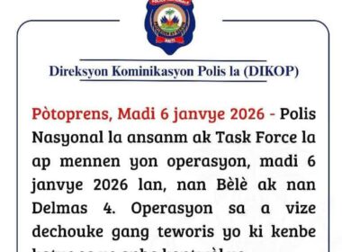 Une opération conjointe de la Police nationale d’Haïti (PNH) et de la Task Force est en cours ce mardi 6 janvier 2026, annonce la Direction…