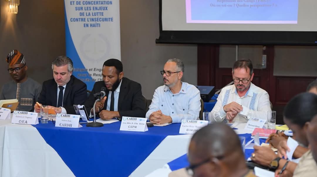 L’événement a été organisé par le Centre d’analyse et de recherche en droits humains (CARDH), avec pour objectif de discuter de la transformation de la MMAS en Force de répression des gangs. Le Premier ministre, malgré les controverses, a pris la parole pour saluer cette initiative.