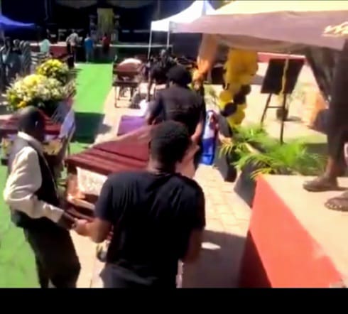 Dès les premières heures de la journée, les cercueils ont été acheminés vers le site prévu. Dix-sept d’entre eux ont été disposés sous des tentes pour permettre une exposition publique avant le début des rites.