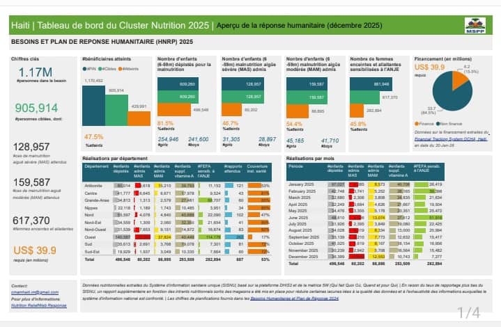 Haïti – Bilan nutritionnel 2025 : 905 914 bénéficiaires atteints malgré un déficit de financement