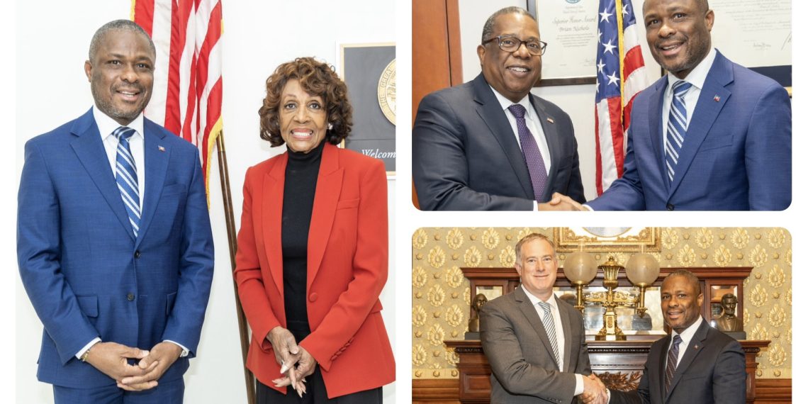Jean-Victor Harvel Jean-Baptiste a également échangé avec Maxine Waters, membre influente du Congrès américain et alliée historique d’Haïti. Waters, connue pour son engagement en faveur des droits humains et son soutien à Jean-Bertrand Aristide, a exprimé son intérêt pour des sujets tels que la sécurité, le soutien à la PNH, et le renouvellement des lois HOPE/HELP, essentielles pour préserver des milliers d’emplois dans le secteur textile.