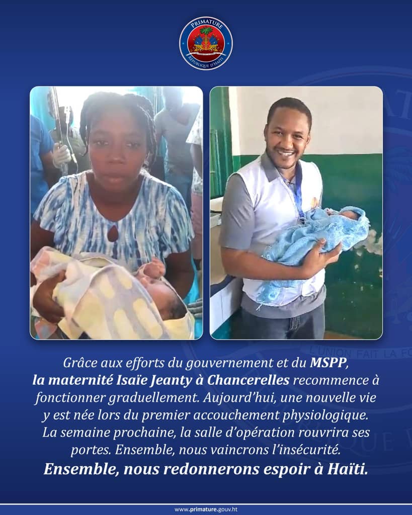 Après une période de fermeture, la maternité Isaïe Jeanty, située à Chancerelles, reprend lentement mais sûrement ses activités, grâce aux efforts conjoints du gouvernement haïtien et du Ministère de la Santé Publique et de la Population (MSPP). Ce mercredi, un moment symbolique a eu lieu avec la naissance d’une nouvelle vie lors du premier accouchement physiologique depuis la reprise de l’établissement.