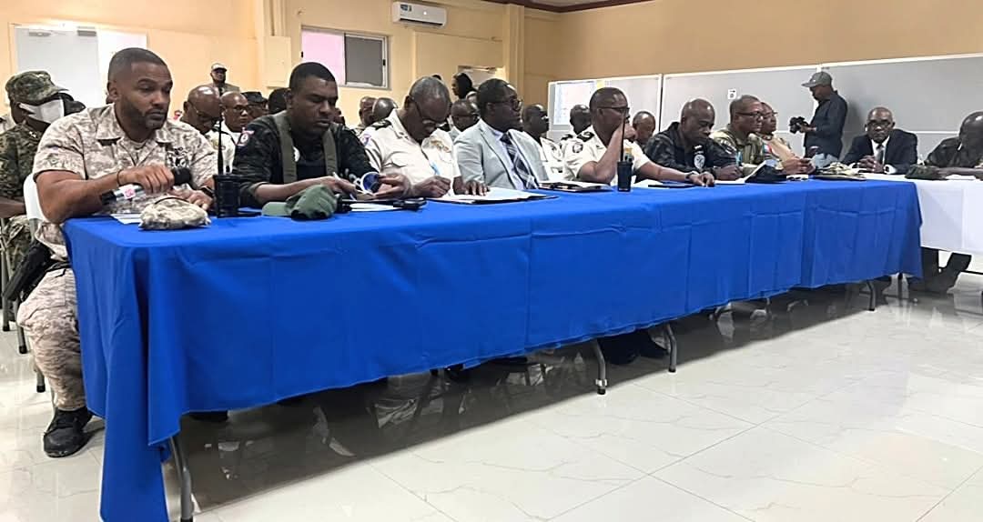 Autour de la table se trouvaient les directeurs départementaux de l’Ouest, DDO-1 et DDO-2, les responsables des unités spécialisées, ainsi que les commissaires et inspecteurs de la région ouest. Le Haut Commandement de la PNH et le commandant de la Force de répression des gangs, l’inspecteur général Godfrey Otunge, ont également pris part à la rencontre.