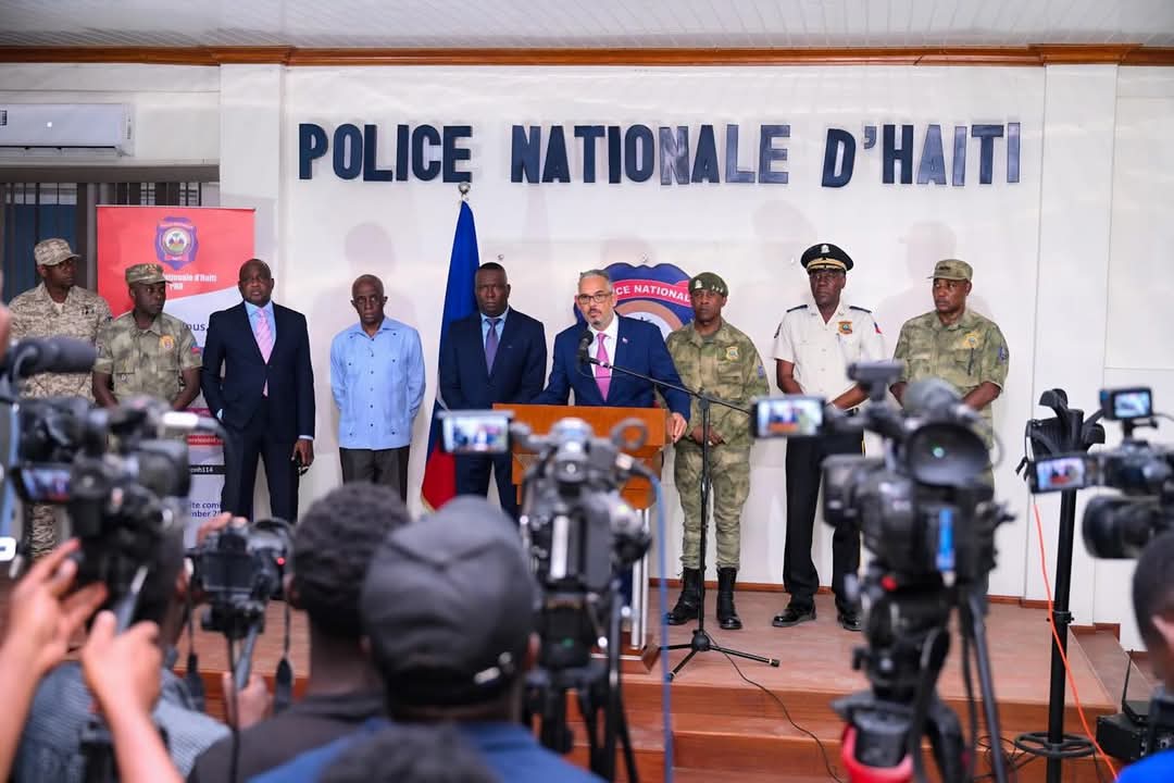 Ce jeudi, le Premier ministre haïtien, accompagné des ministres de la Justice, de la Sécurité publique, de l’Intérieur et des Collectivités territoriales, ainsi que du Secrétaire d’État à la Sécurité publique, a rencontré les autorités de la Police nationale d’Haïti (PNH). Cette rencontre, marquée par la présence des membres du Conseil Supérieur de la Police Nationale (CSPN), a été l’occasion de poser des bases solides pour intensifier la lutte contre l’insécurité qui ravage le pays.