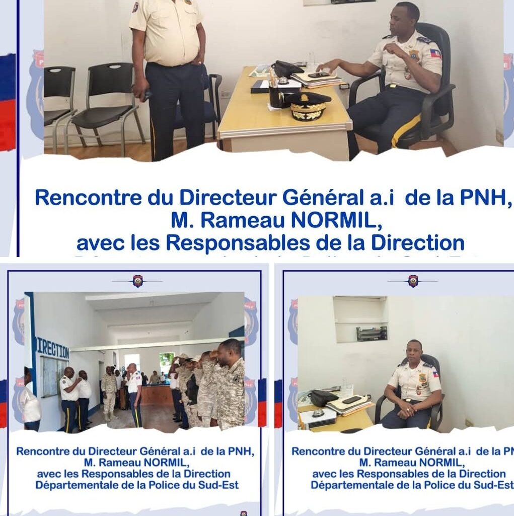 Le Directeur Général a.i de la Police Nationale d’Haïti (PNH), M. Rameau NORMIL, a effectué une visite dans la commune de Jacmel où il a rencontré les Responsables de la Direction Départementale de la Police du Sud-Est. Cette rencontre, tenue le jeudi 23 janvier, a permis au Commandant en chef a.i de la PNH de dialoguer avec les responsables et agents de différents grades afin de renforcer les liens institutionnels et d’évaluer les besoins régionaux en matière de sécurité publique.