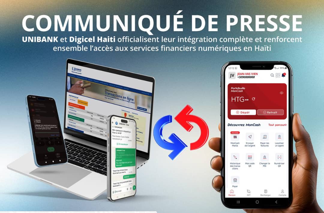 UNIBANK et Digicel Haïti ont annoncé ce jeudi 18 décembre le partenariat pour l’intégration de leurs services financiers numériques. Cette interconnexion est déjà fonctionnelle et disponible pour l’ensemble de leurs clients respectifs.